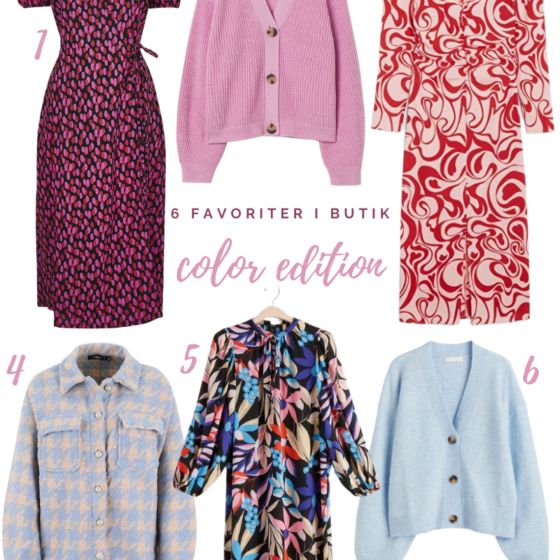 6 FAVORITER – COLOR EDITION 1 Klänning, CUBUS* | 2 Kofta, H&M* | 3 Klänning, MONKI* 4 Jacka, MISSGUIDED* | 5 Klänning, LINDEX* | 6 Kofta, H&M* Är…